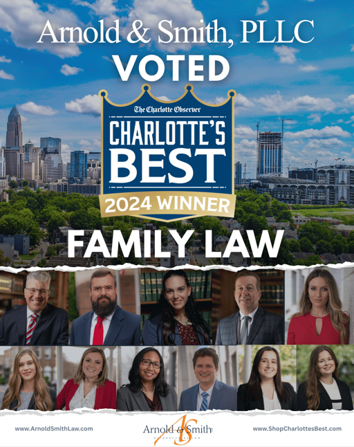 For the second consecutive year, the Charlotte community has awarded Arnold & Smith, PLLC Gold for Charlotte’s Best in Family Law 2024, affirming once again that families across the region trust our firm when navigating life’s most personal and emotionally challenging legal matters.